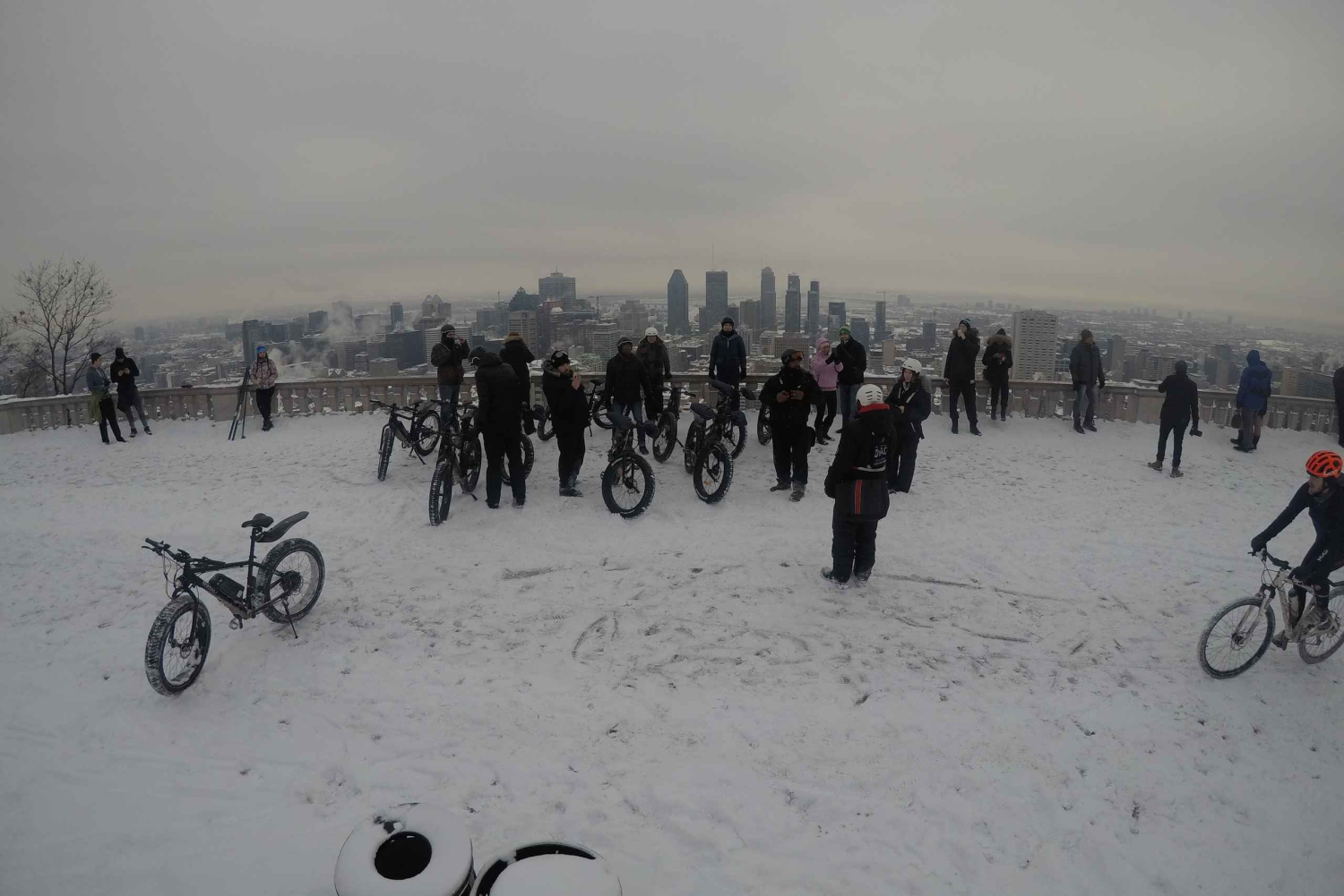 Reúnete en el punto de encuentro preestablecido para dirigirte al Monte Royal en una bicicleta eléctrica de neumáticos gordos, diseñada para agarrarse con facilidad a las desafiantes superficies invernales. Aprovecha los neumáticos monstruosos y las ruedas motorizadas para hacer un trabajo ligero sobre la nieve, tanto para ciclistas novatos como para ciclistas experimentados.