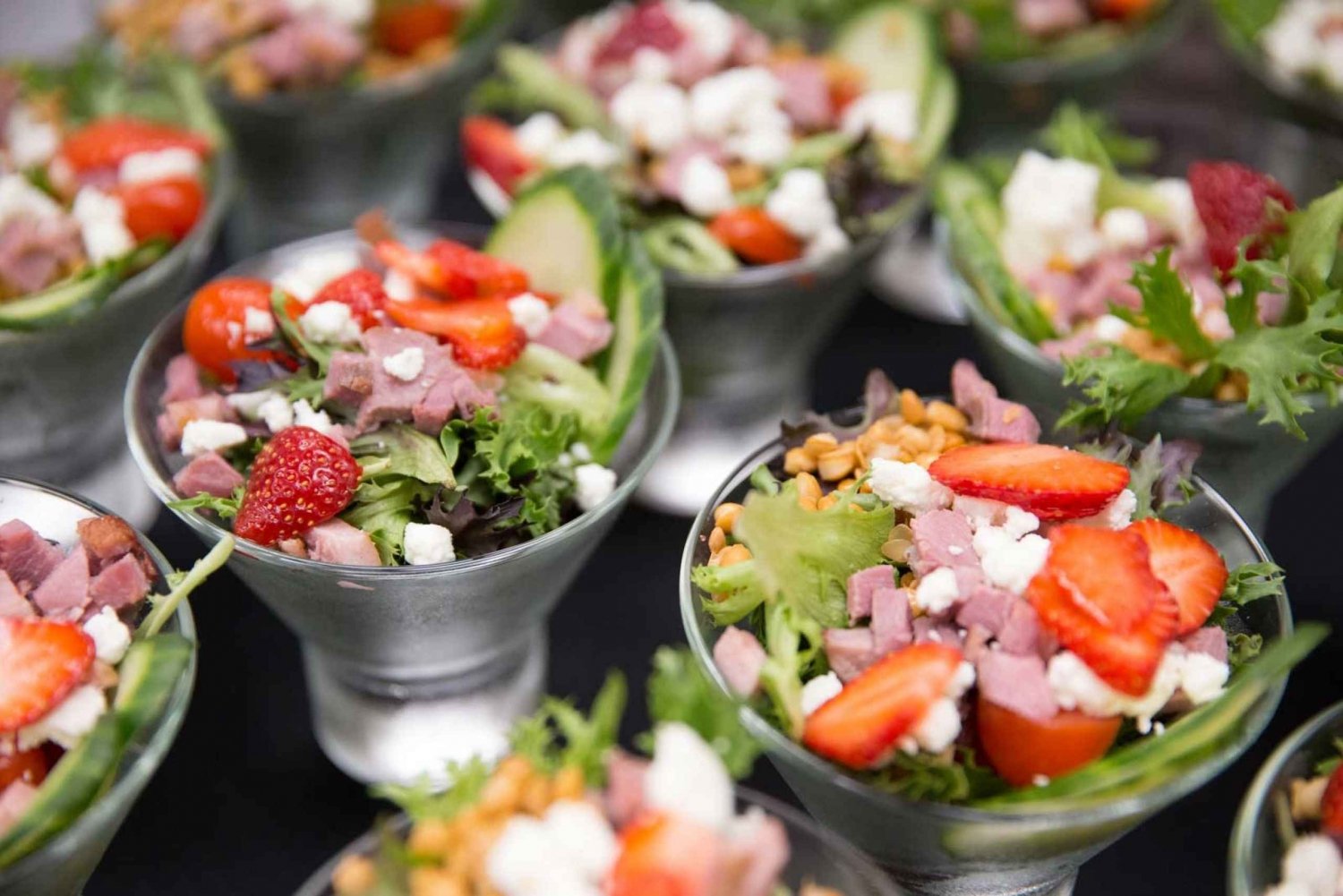 - Antipasto: Insalata di faraona confit con orzo perlato all'aglio nero e miele, uovo di quaglia, ciliegia macinata e vinaigrette al sidro di ghiaccio