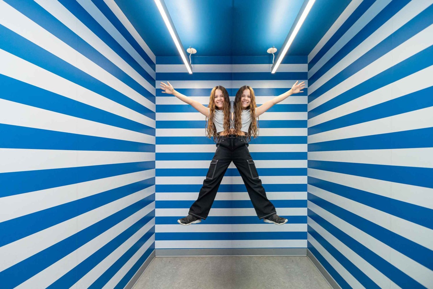 - Test je evenwicht in de gekantelde kamer en verwonder je over de oneindigheidstunnel.
